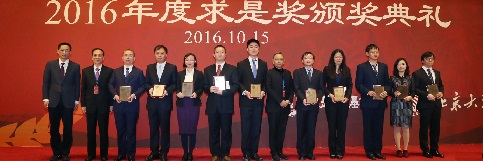 2016年10月15日,“2016求是奖颁奖典礼”在北京大学英杰交流中心举行。求是基金会主席查懋声先生以及顾问杨振宁、孙家栋、施一公、韩启德,北京大学党委书记朱善璐、与往届求是奖获得者和师生代表等约400人参加了典礼。本届颁奖典礼揭晓了2016年度“求是杰出科学家奖”和“求是杰出青年学者奖”。我室开放PI杨竞研究员与浙江大学金一政等共10位青年学者获得2016年度“求是杰出青年学者奖”。