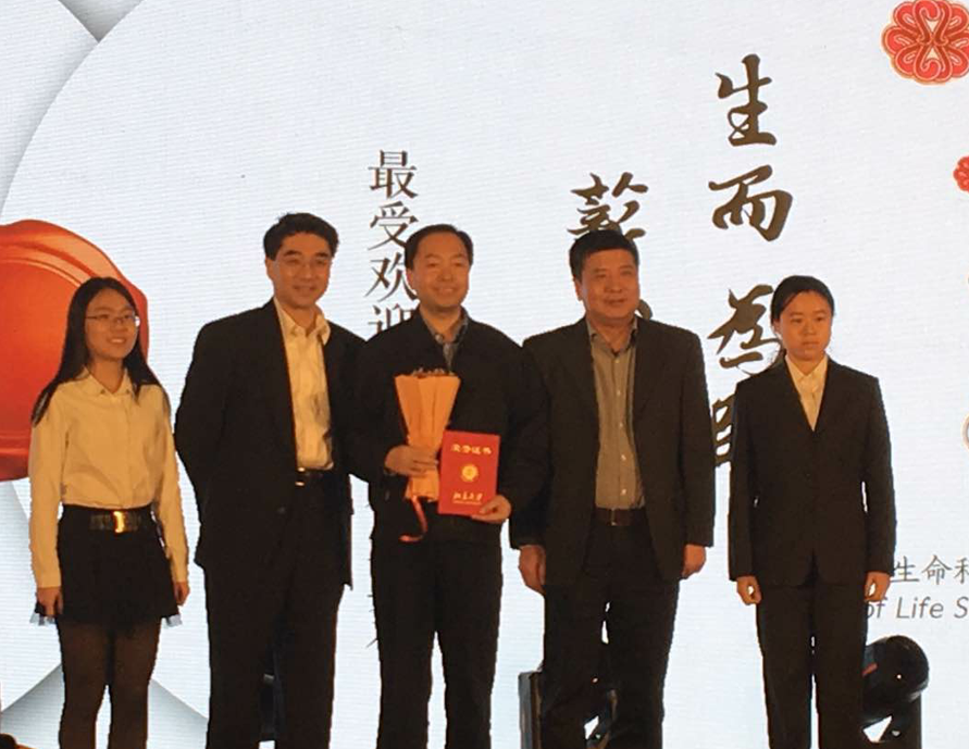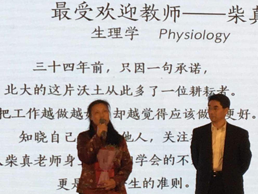 在即将迎来新年元旦佳节之际,北京大学生命科学学院于2016年12月17日举办了主题为“一生相伴,寒夜拥暖”元旦晚会,晚会上进行了本年度学院“最受欢迎教师”颁奖环节,我室柴真教授和王世强教授作为获奖者上台领奖。两位老师从教育谈起、进而延伸到能力的培养、理念的传播,最后对生科人在新一年中的学习和工作提出了殷切期望,寄语同学要以天下为己任,要努力对社会有所贡献。