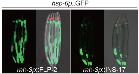 图1. 神经组织内过表达神经肽FLP-2能够直接激活远端组织的mitoUPR(神经肽INS-17是阴性对照)