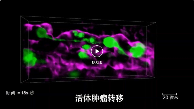 图5. 活体斑马鱼体内活体肿瘤转移高速高分辨成像