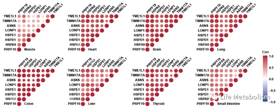 图4 人源组织中,PRPF19和UPRmt相关基因的表达趋势呈正相关