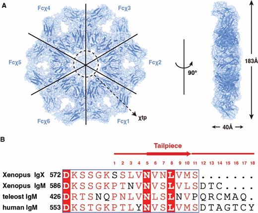 图1. IgX-Fc六聚体的冷冻电镜结构