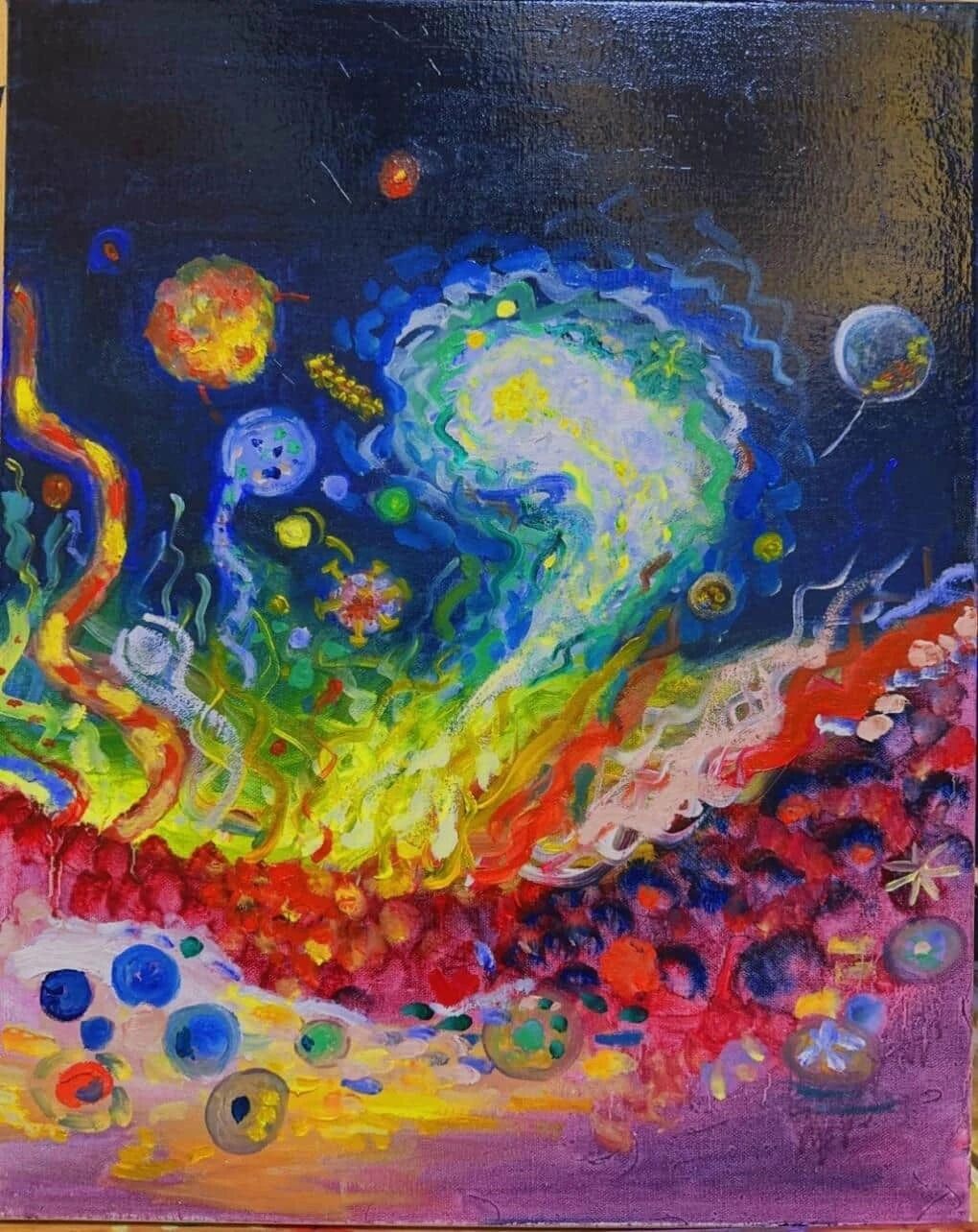 ▲警报素与芳香素的双模TRPV3激活介导的系统性抗体应答,此油画为Immunity & Inflammation论文的当期封面(图片来源:吴海竞教授 油画作品)